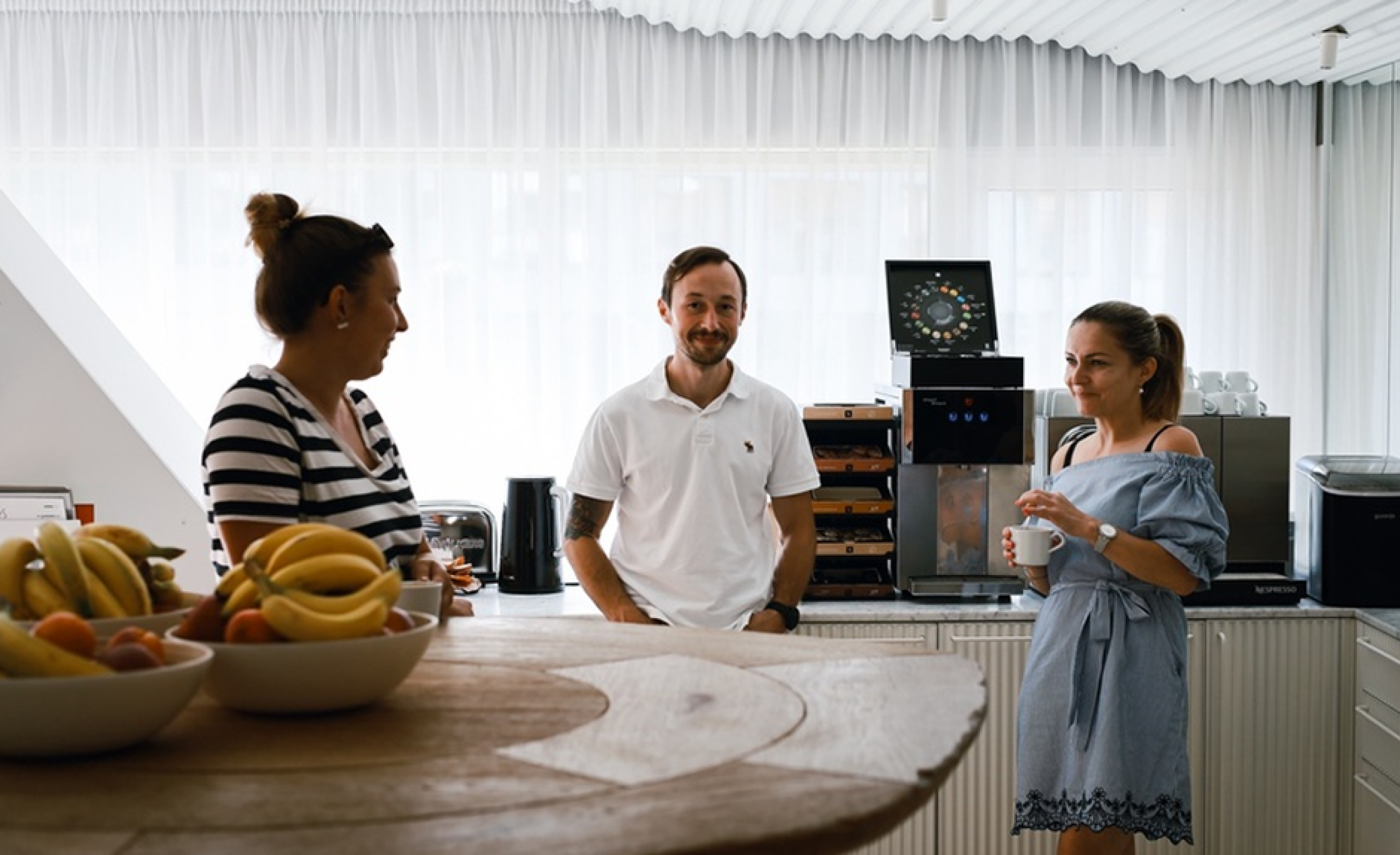 Naše kanceláře nabízejí krásné a moderní prostory včetně sdílených pracovních míst a společnou terasou. K dispozici je plně vybavená kuchyňka s nepřeberným množstvím kávy a čajů a každý den čerstvé ovoce i zelenina. Samozřejmostí je také sprcha, díky které je možné pohodlně dojíždět do práce na kole.